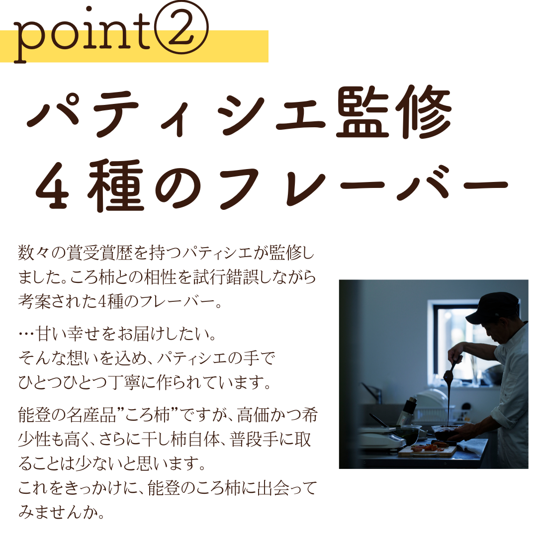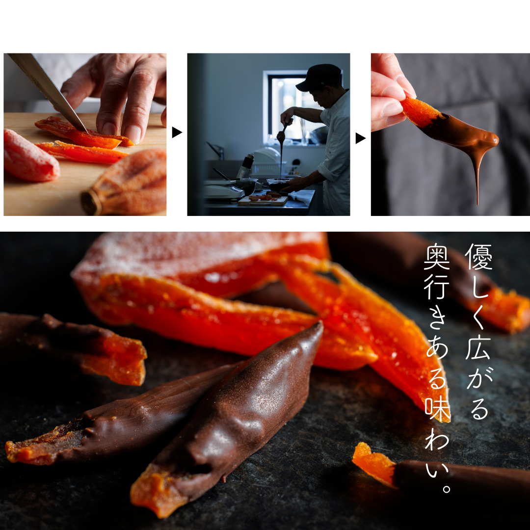 ころ柿のトロっとした甘みを少し苦味のきいたビターチョコと