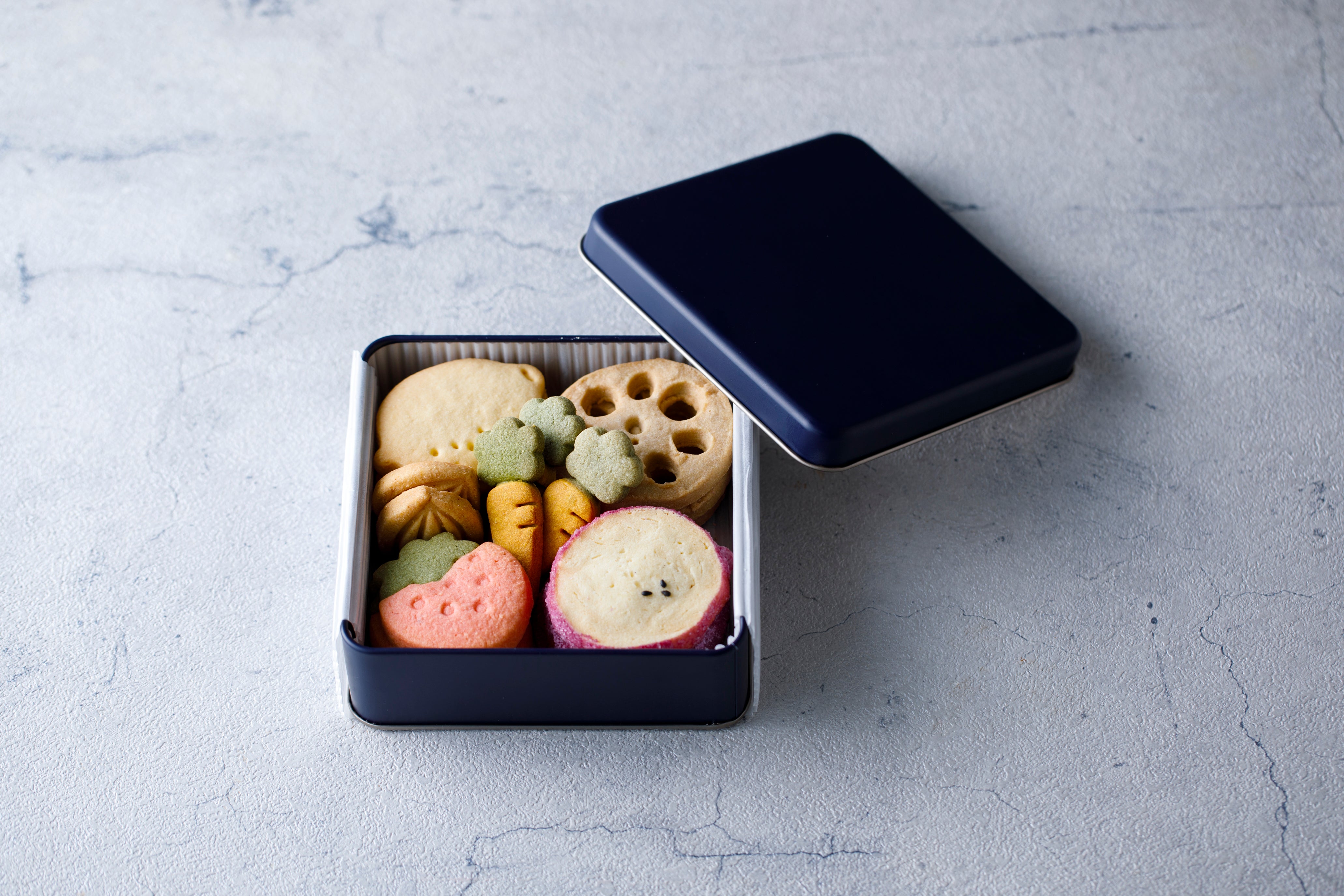 5-7種類のフルーツ&野菜クッキーがはいったクッキー缶です。
