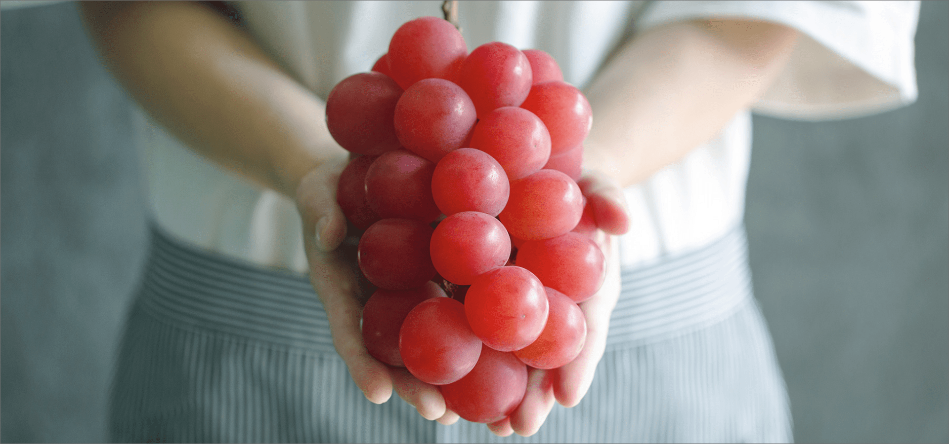 宝石のように輝く紅色の大粒ブドウ「ルビーロマン」